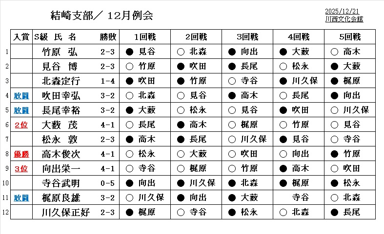 - 11月例会と第9回結崎支部最強戦三番勝負は、同室で行われました。