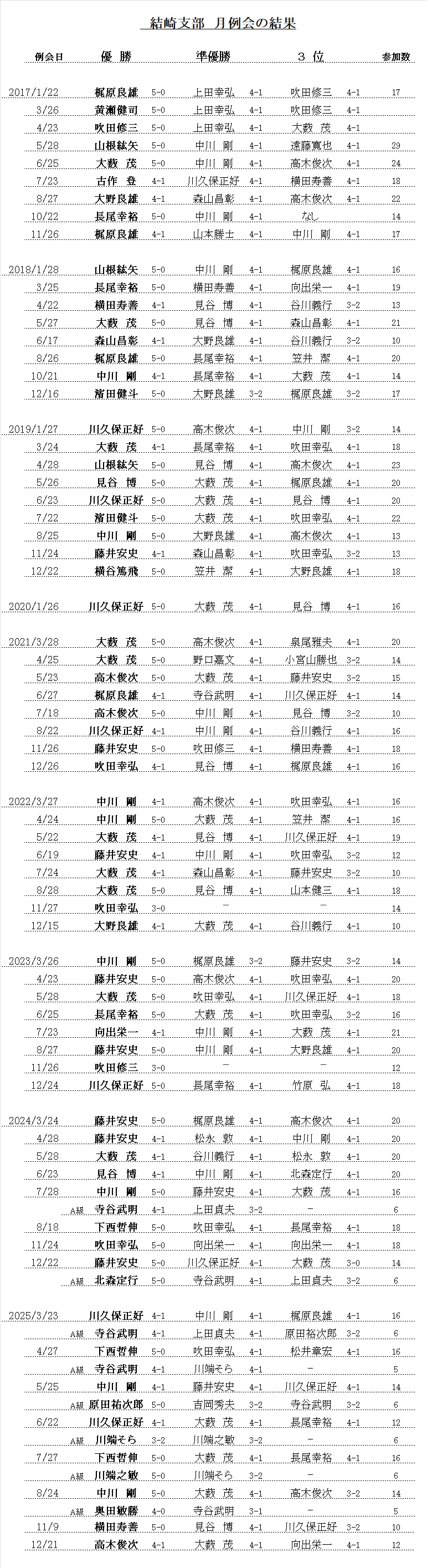 - A級優勝は、北森定行 さん