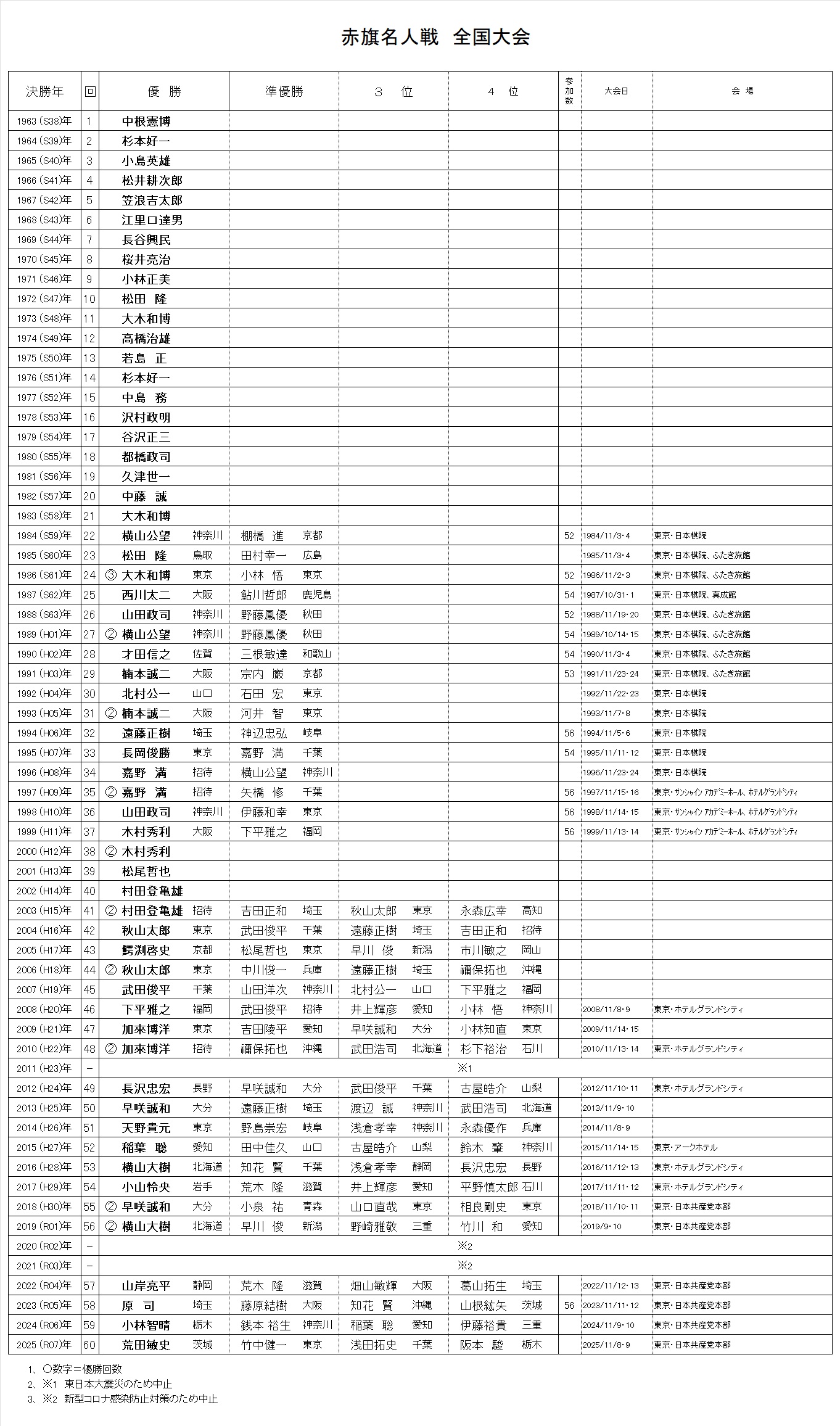 - ◆第56回赤旗名人戦 全国大会 2019/11/9~10 東京・日本共産党本部