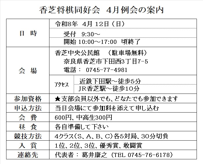 香 芝 将 棋 同 好 会