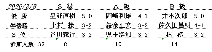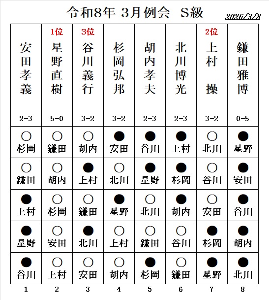 - 令和5年3月度例会・ S級優勝は、谷川義行さん (斑鳩町)