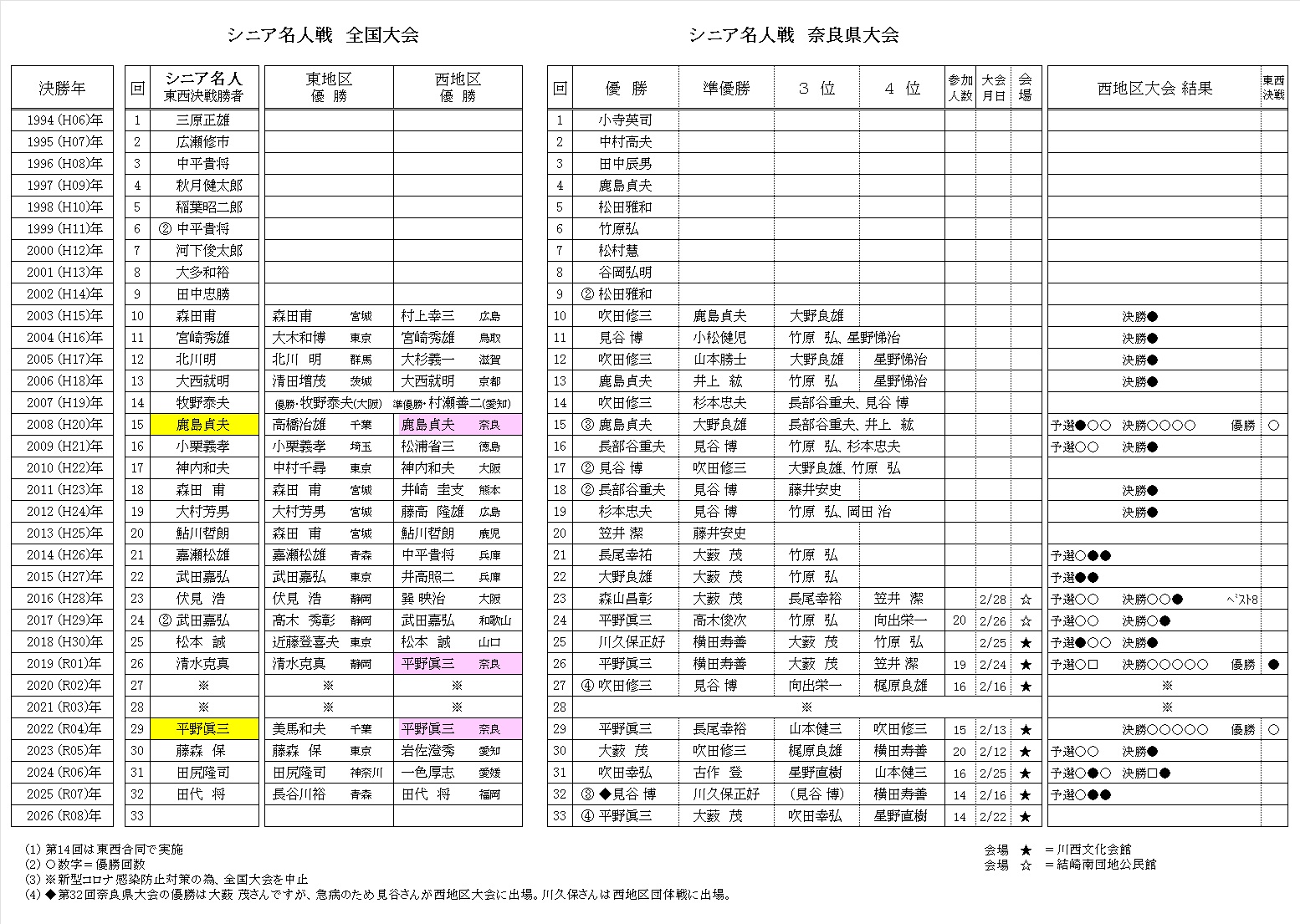 - ◆第25回シニア名人戦 奈良県大会 2018/2/25(日) 川西文化会館
