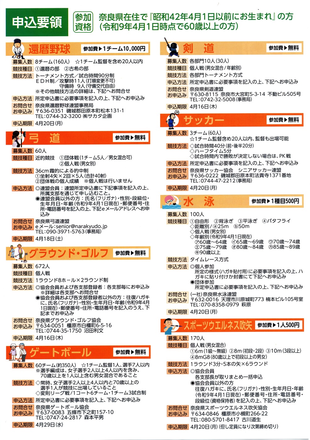 - ◆第33回 ねんりんピック岐阜2021 奈良県大会 中止