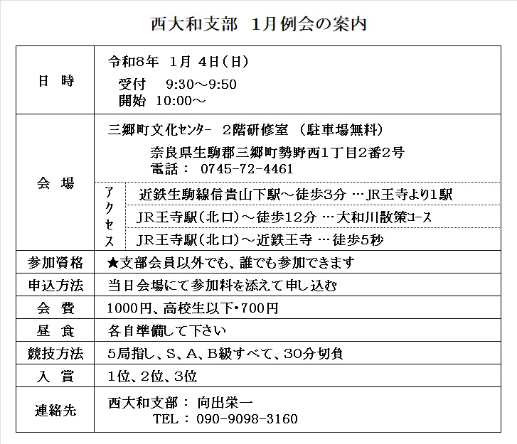 西大和支部・例会 2018(H31)年~2021(R03)年 & 入賞者一覧はこちら