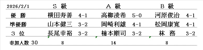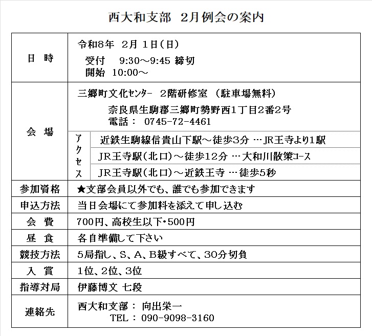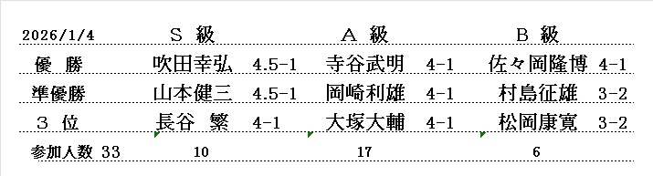 西大和支部 令和8年 1月例会 (30分切負) 2026/1/4(日) 三郷町文化センタ- 参加者33名