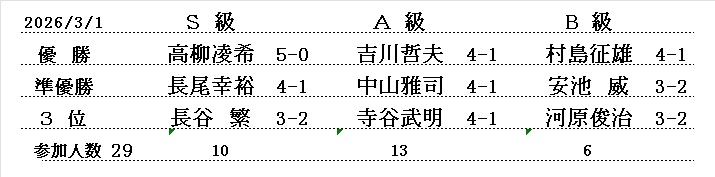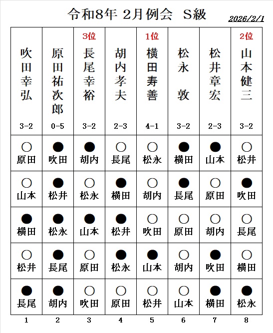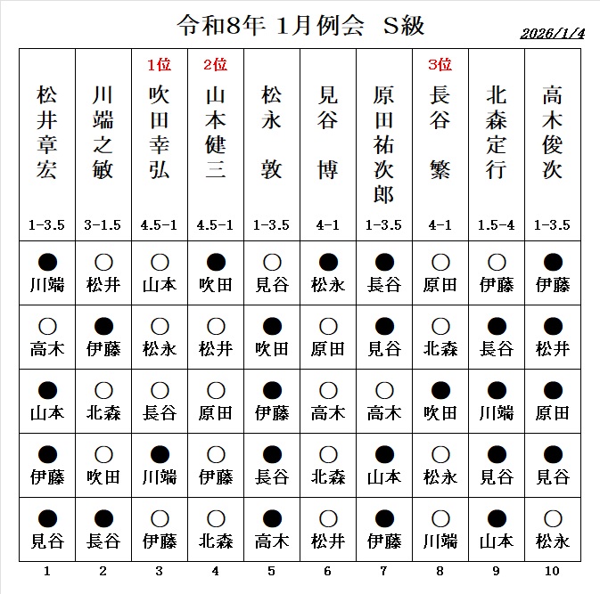 - 伊藤博文七段の指導対局、 勝者:1.5勝 敗者:0.5敗 が例会の成績に反映されます。