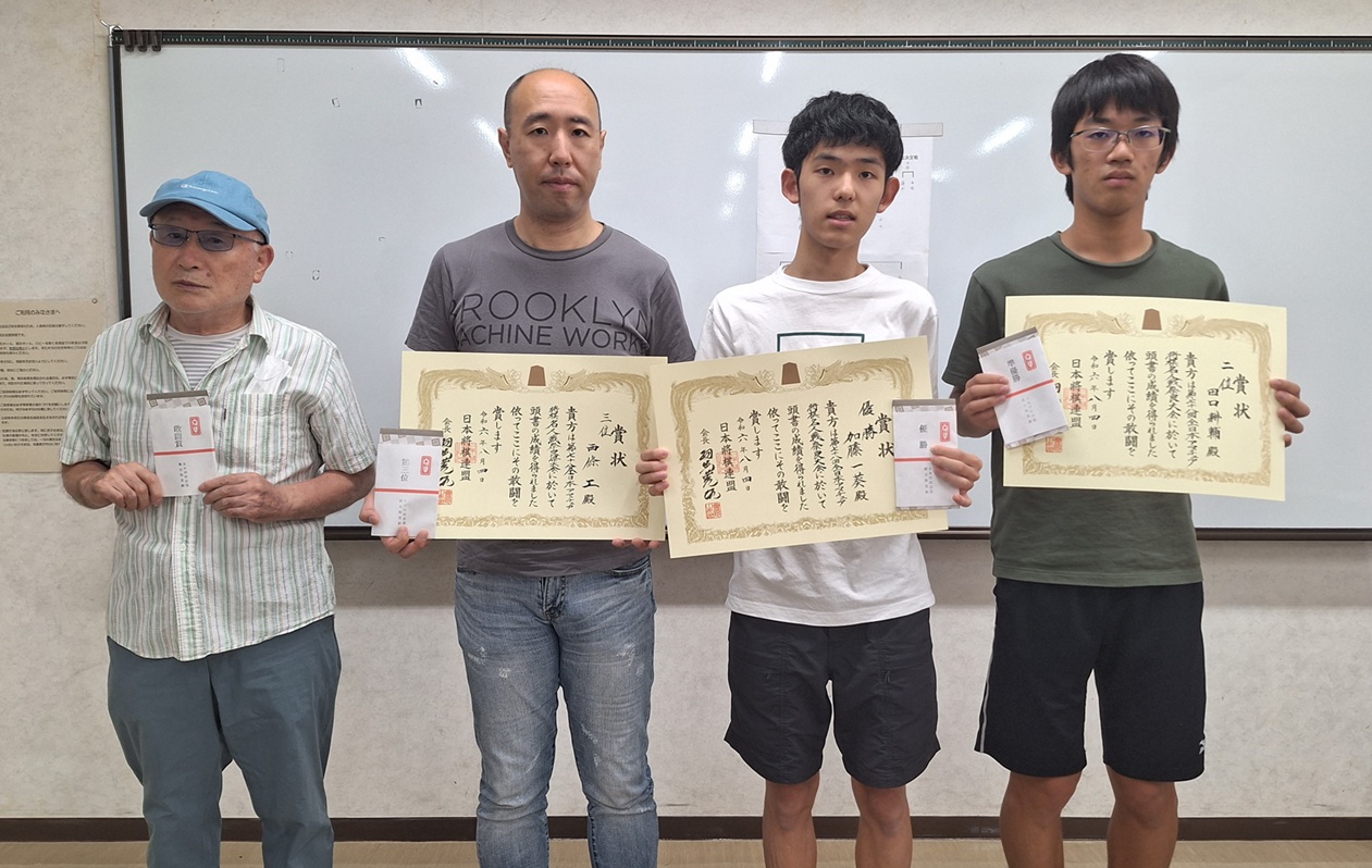 - 左から、4位・藤井安史さん、3位・西條 工さん、優勝・加藤一葵さん、準優勝・田口耕輔さん