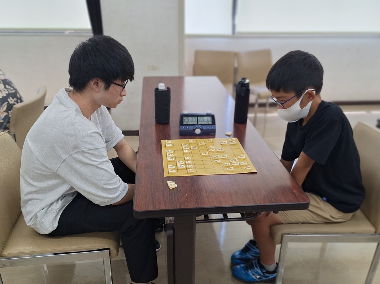 終盤長手数を秒読みで指した両者……。ハラハラドキドキの10数人の観戦者は最後まで