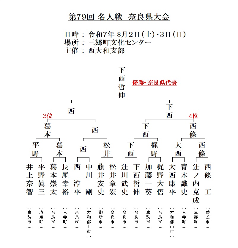 第79回名人戦・奈良県大会 2025/8/2・8/3 三郷町文化センター 参加者29名