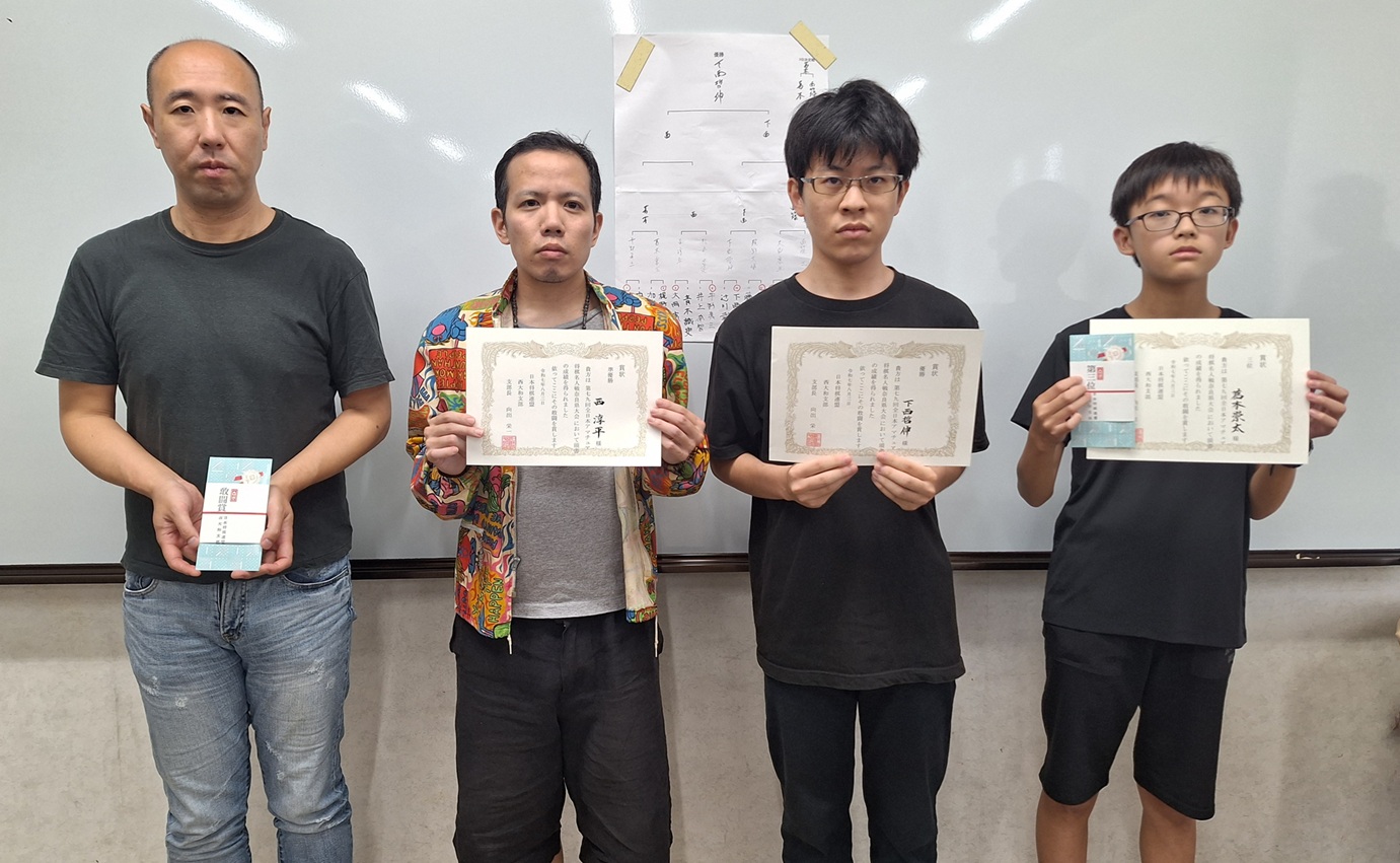 - 左から、4位:西條 工さん、準優勝:西 淳平さん、優勝:下西哲伸さん、3位:葛本崇太さん