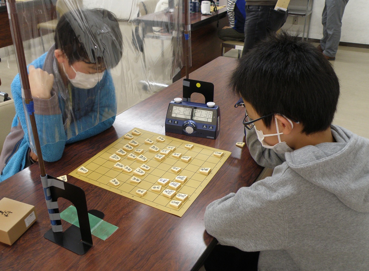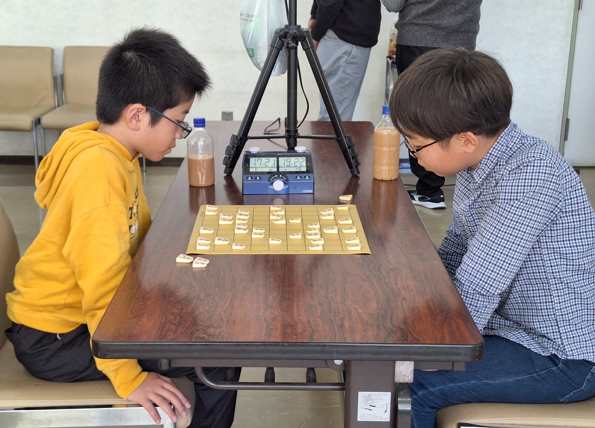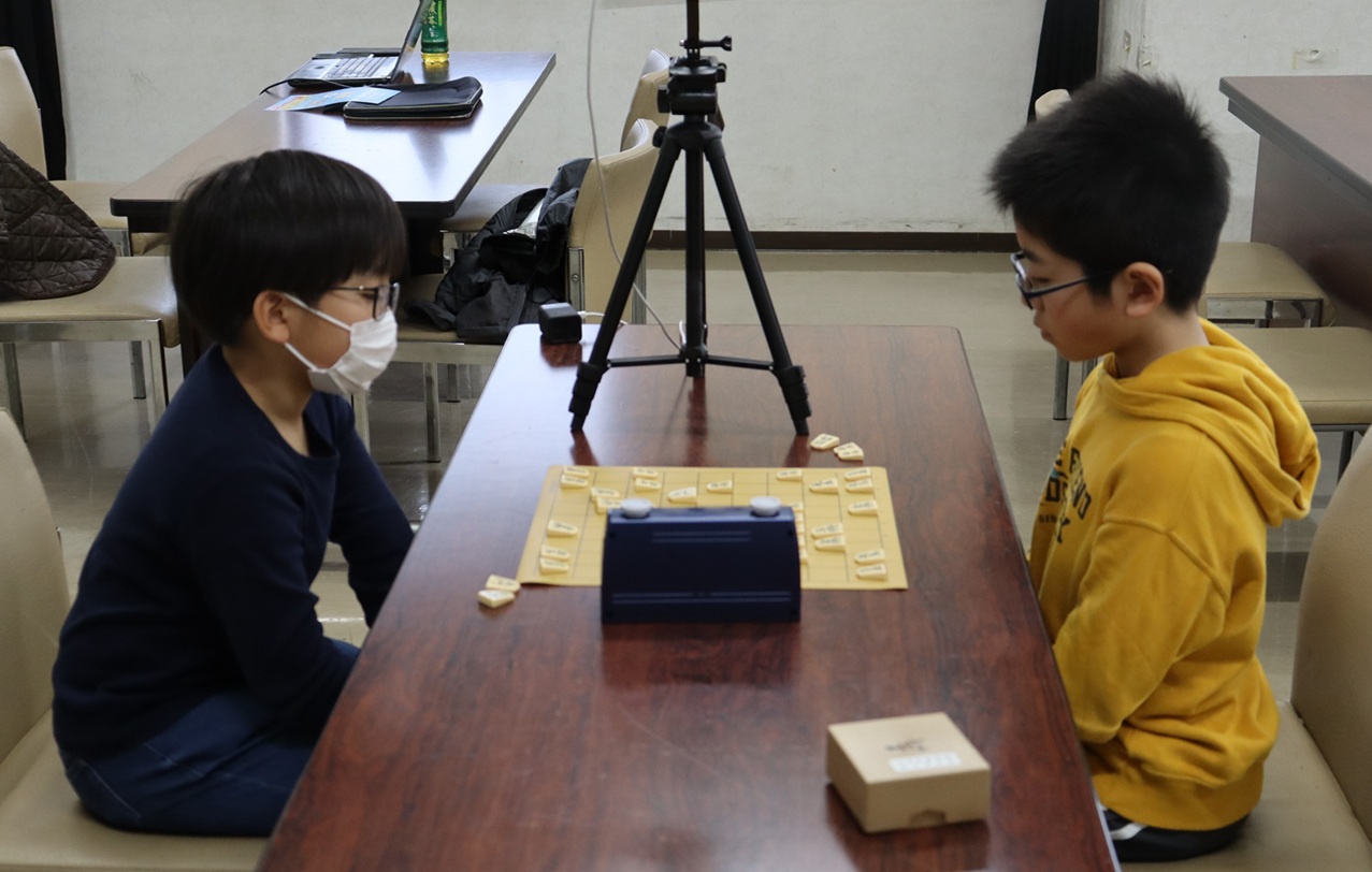 準決勝第1局左から、 鳴瀬裕大君(奈良) vs 村松勇亮君(静岡)。 結果は村松君の勝ち。
