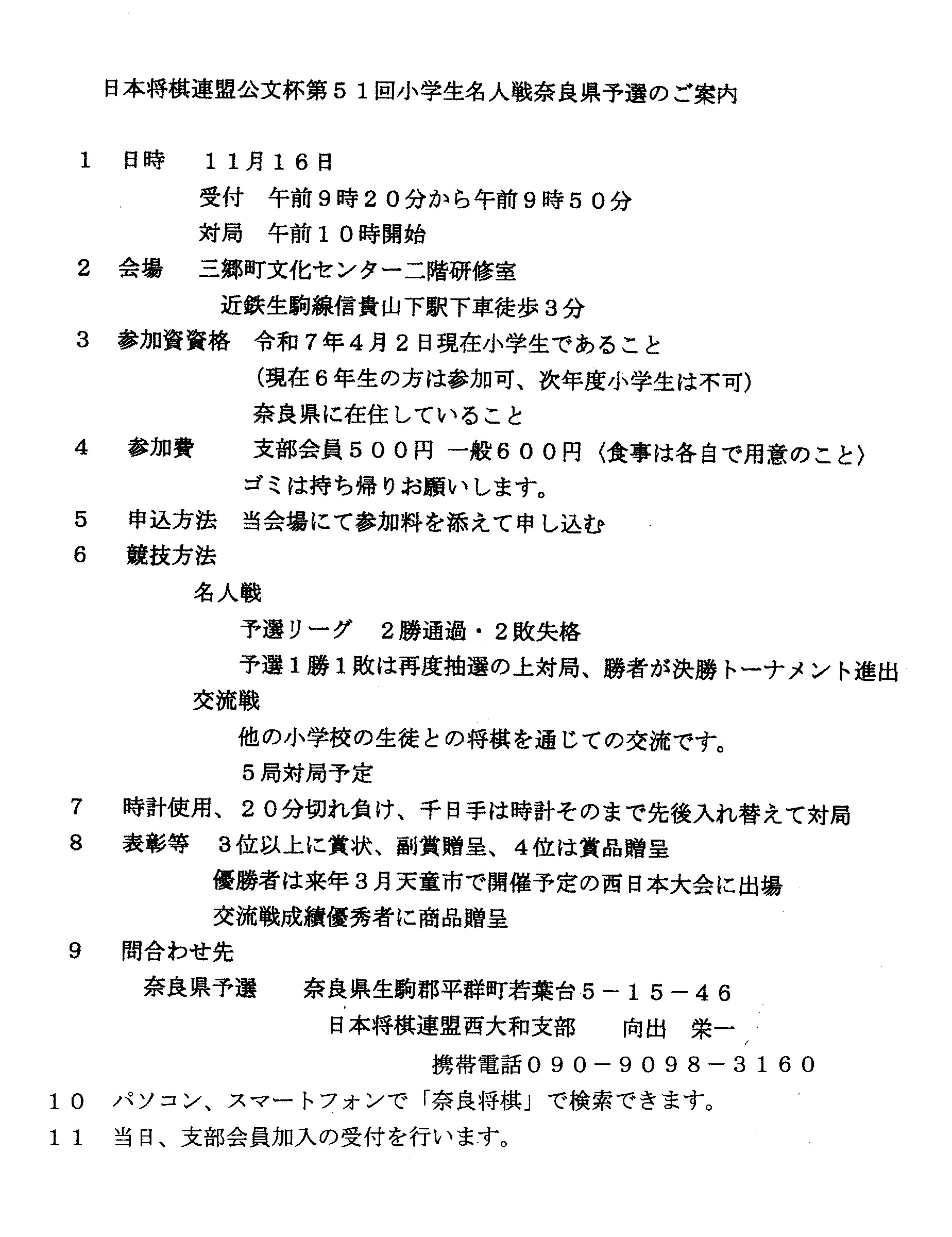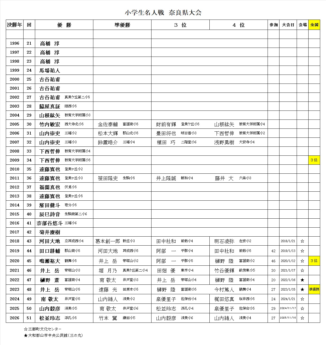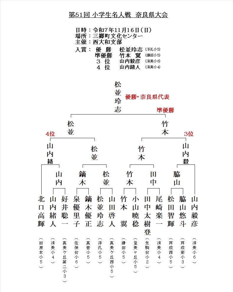 第51回小学生名人戦 奈良県大会 2025/11/16(日) 三郷町文化センタ - 参加者27名