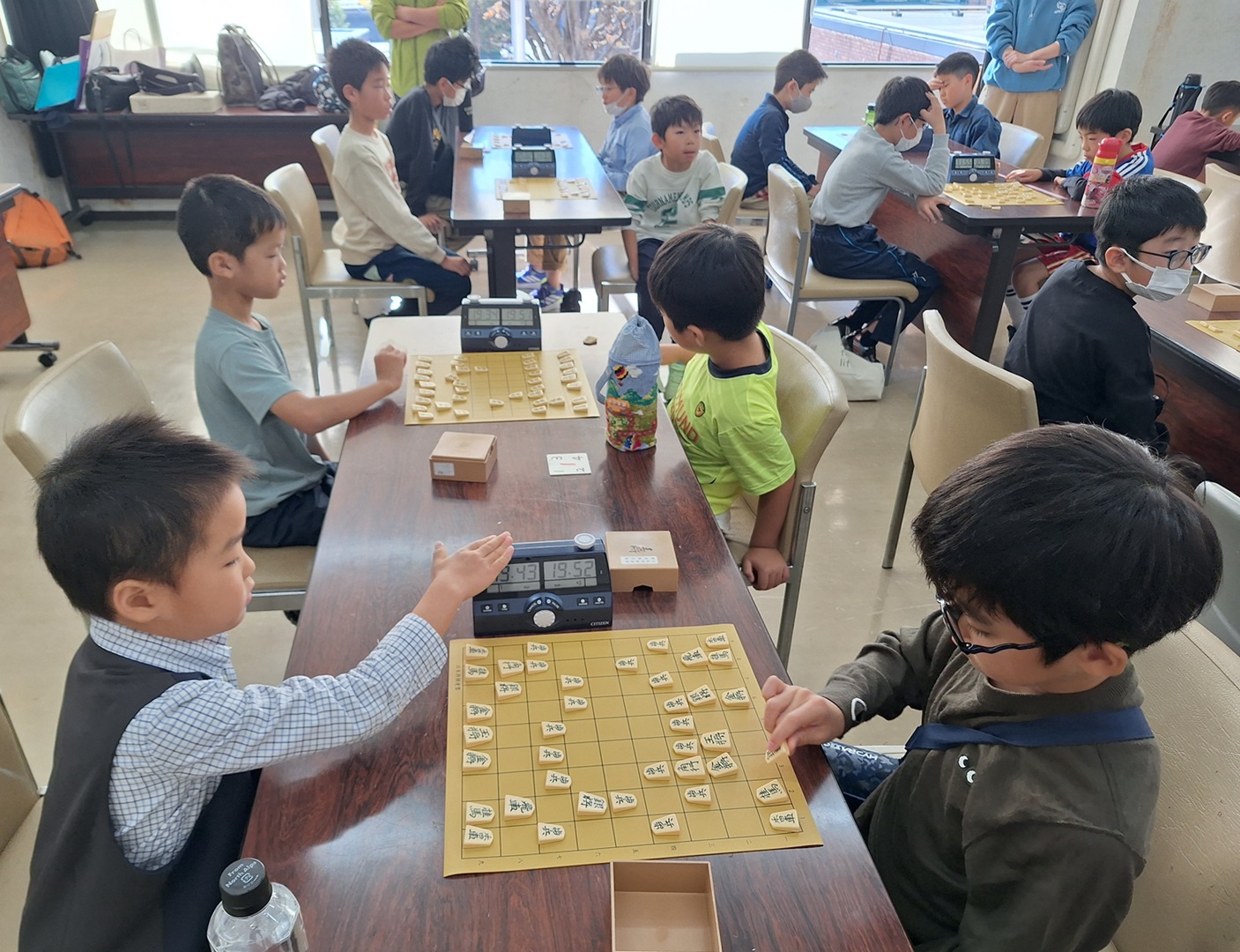 - 参加者は、名人戦29名、交流戦10名、指導対局15名以上。 全国大会を目指す名人戦、楽しく指せる交流戦。