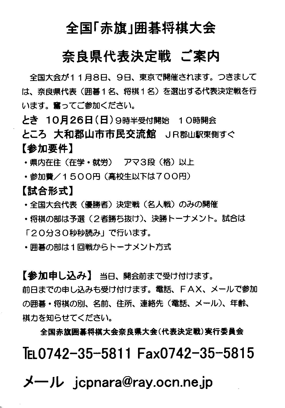 - 山根さんは今年の、名人戦奈良県代表、王将戦近畿代表、赤旗名人戦奈良県代表、と奈良県のトップクラスです。 全国大会(11/9・10)での活躍を期待します!。