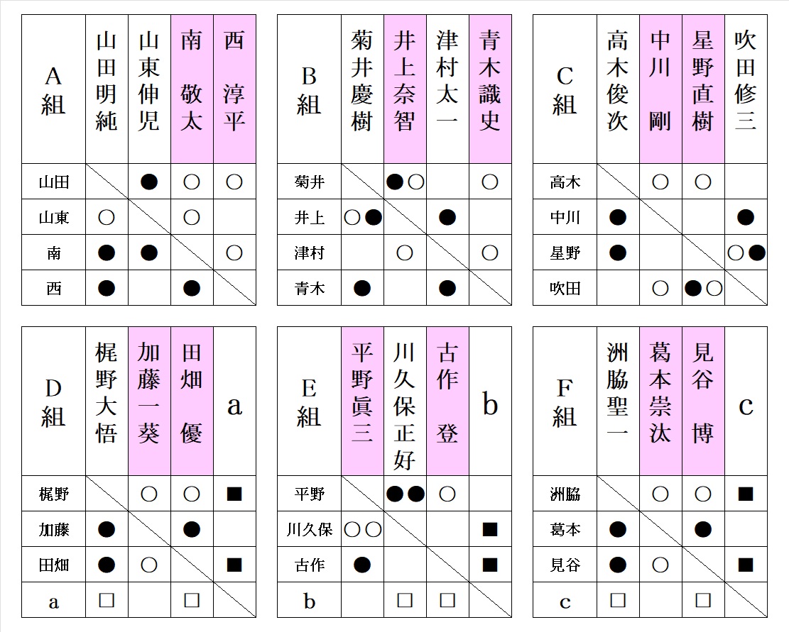 - 決勝戦、 平野眞三 vs 西 淳平 3位決定戦、 古作 登 vs 田畑 優
