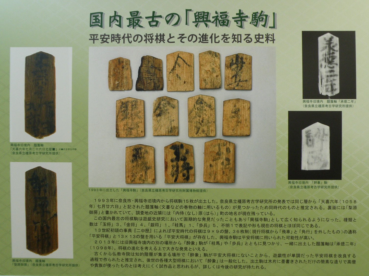 - 1993年に興福寺旧境内から将棋駒15枚が出土した、1058年頃のものと推定される。