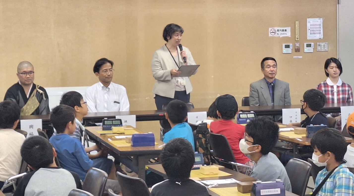 - 主催の、興福寺、朝日新聞社、奈良市中部公民館の方の挨拶より開会しました。 伊藤博文七段の話に子供たちは没入。