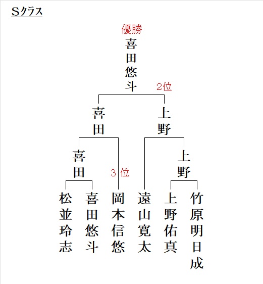 - 大会参加者は56名。 S級5名→総当たり、リ-グ戦