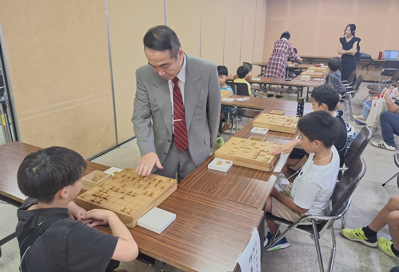 長時間連続の指導対局ご苦労様でした。対局後は子供たちに、やさしく、丁寧に要点を話されていました。