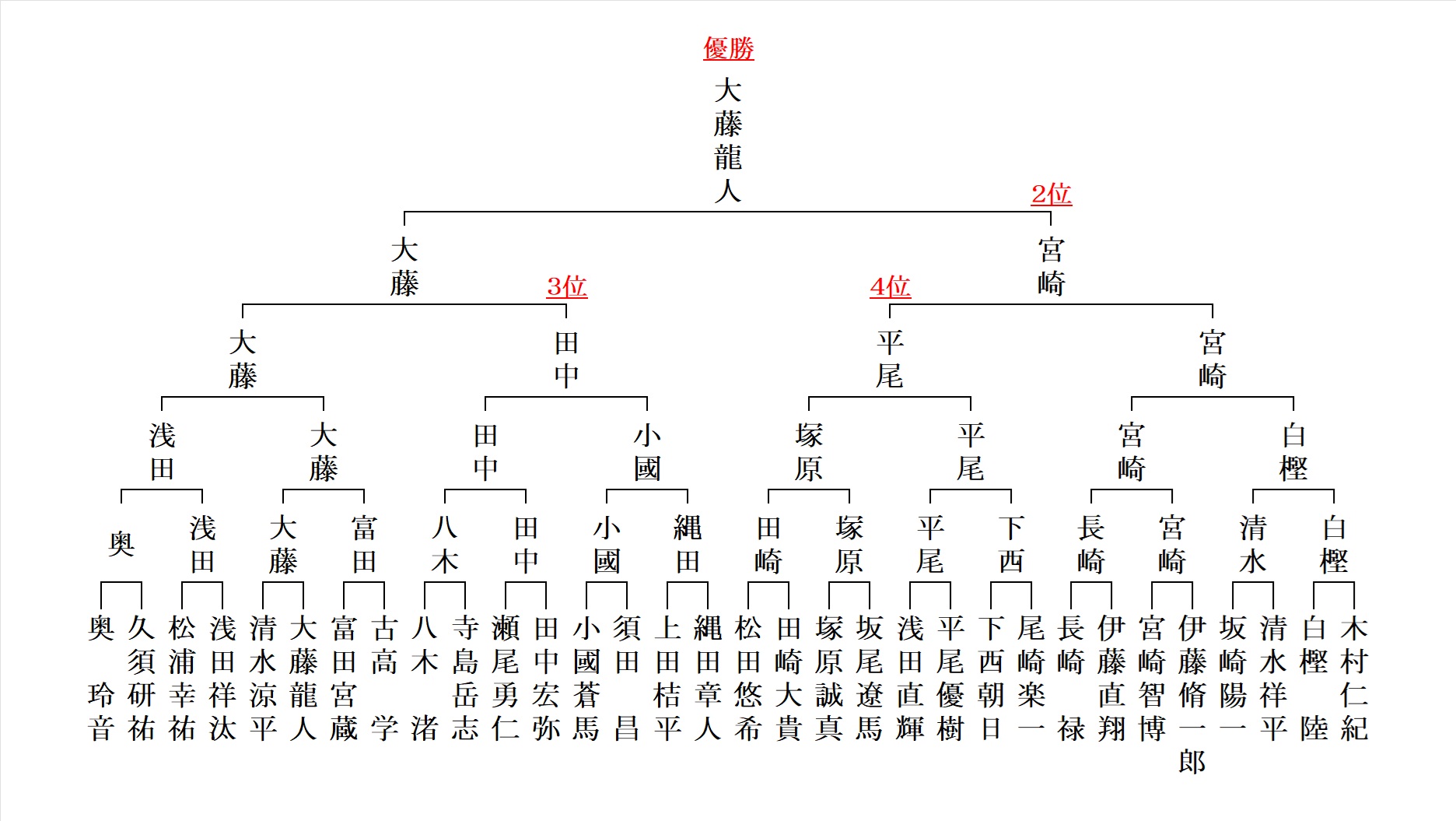 - 大会参加者は97名。 S級12名→予選2勝通過・2敗失格→決勝ト-ナメント