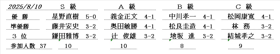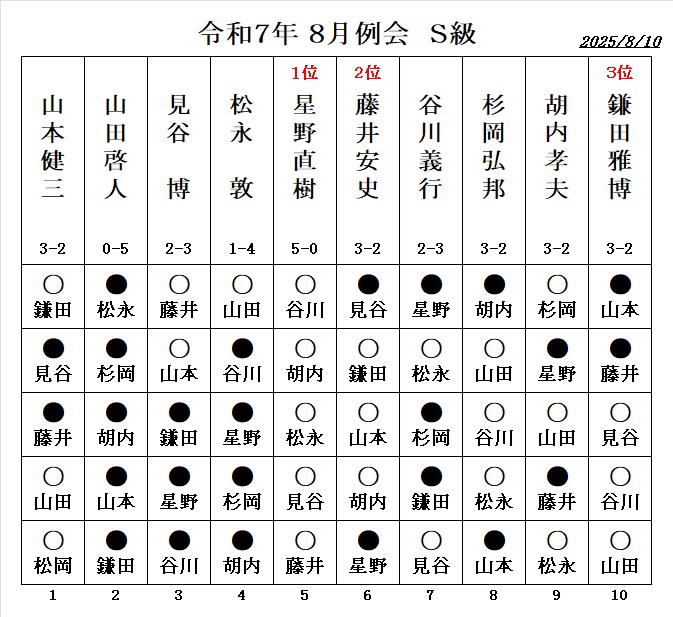 2019年 8月の例会・ S級優勝は、見谷 博さん (大和郡山市)
