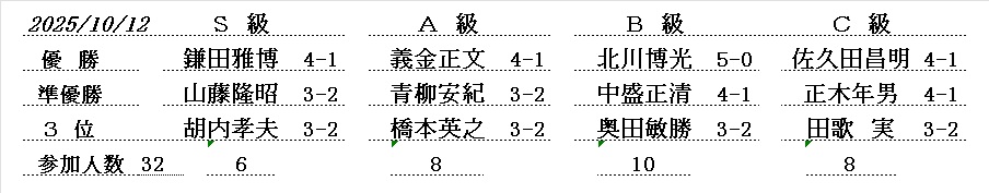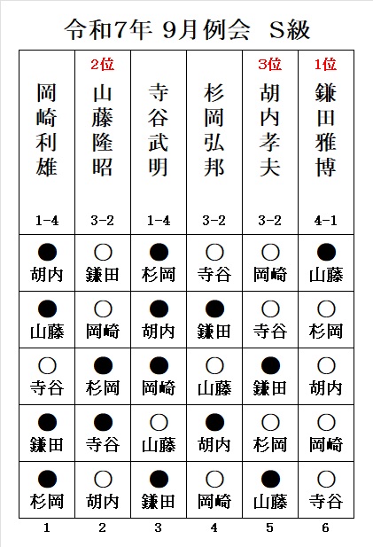 - 令和5年10月度例会・ S級優勝は、胡内孝夫さん