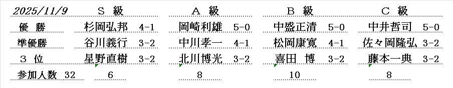 - 令和5年11月度例会・ S級優勝は、見谷 博さん(大和郡山市)