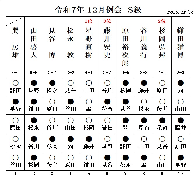 - 令和4年12月度例会・ S級優勝は、谷川義行さん (斑鳩町)