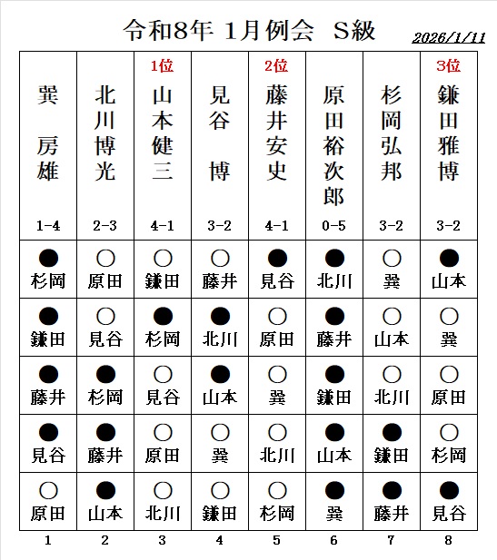 - 令和5年1月度例会・ S級優勝は、胡内孝夫さん (安堵町)