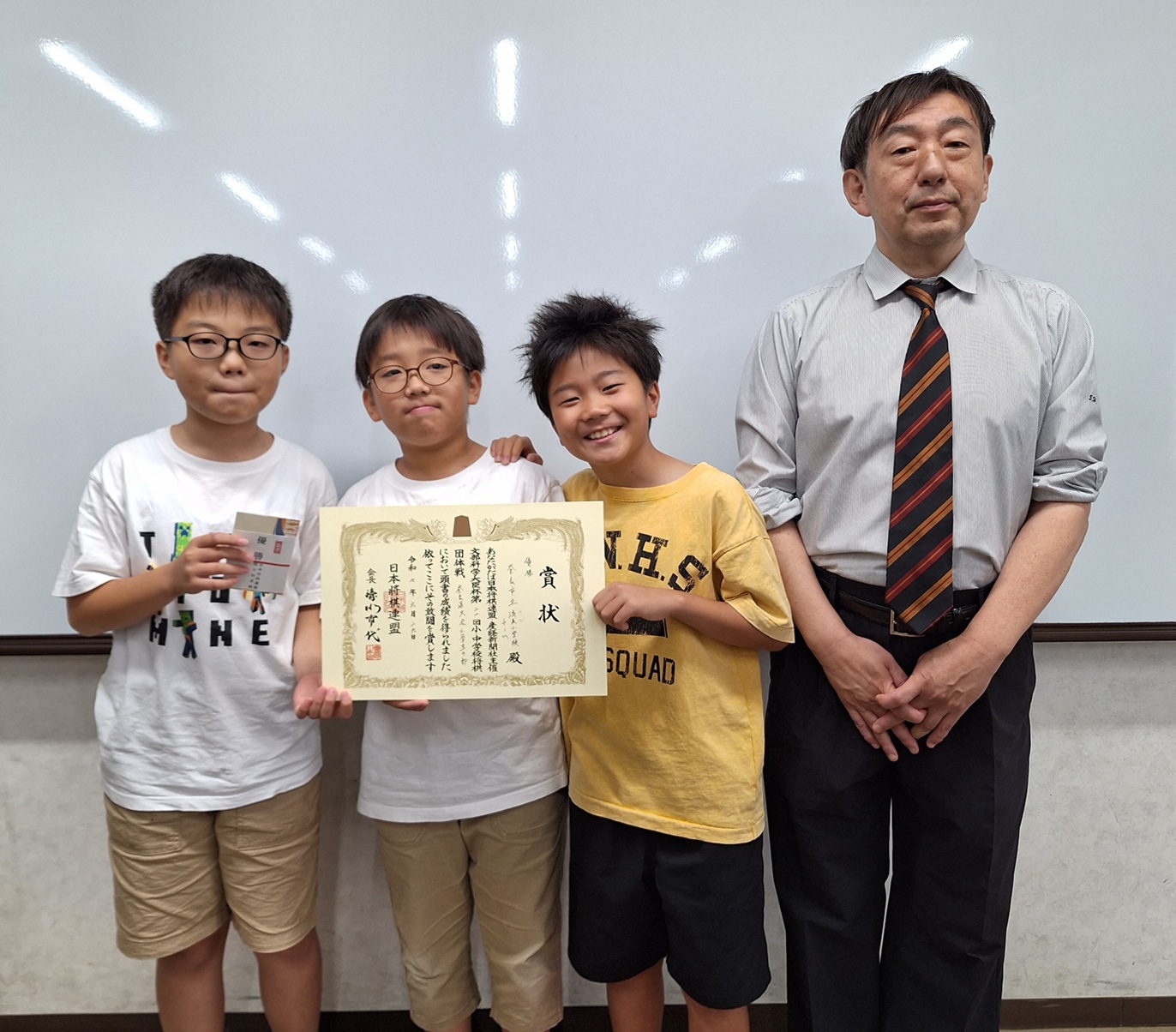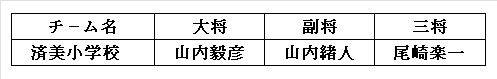 - 優勝:済美小学校チーム(山内毅彦さん、山内緒人さん、尾崎楽一さん)、平藤眞吾七段