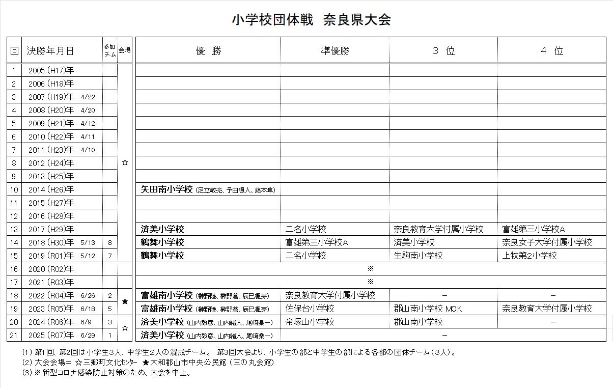 - 小学校団体戦 奈良県大会優勝校