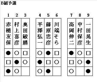 - 例会としては珍しい、ト-ナメント戦です。敗者は続いて、リ-グ戦です。