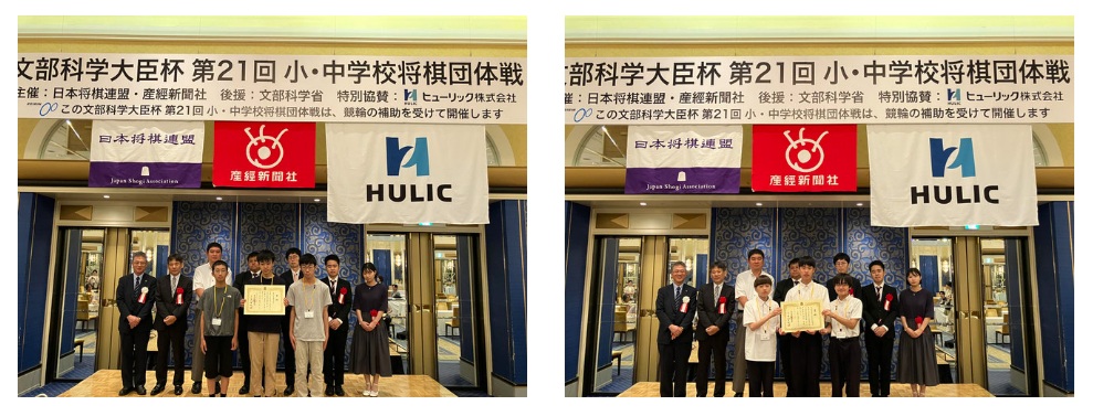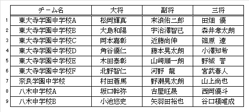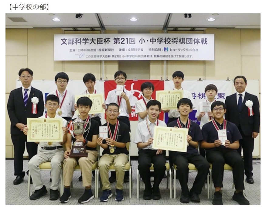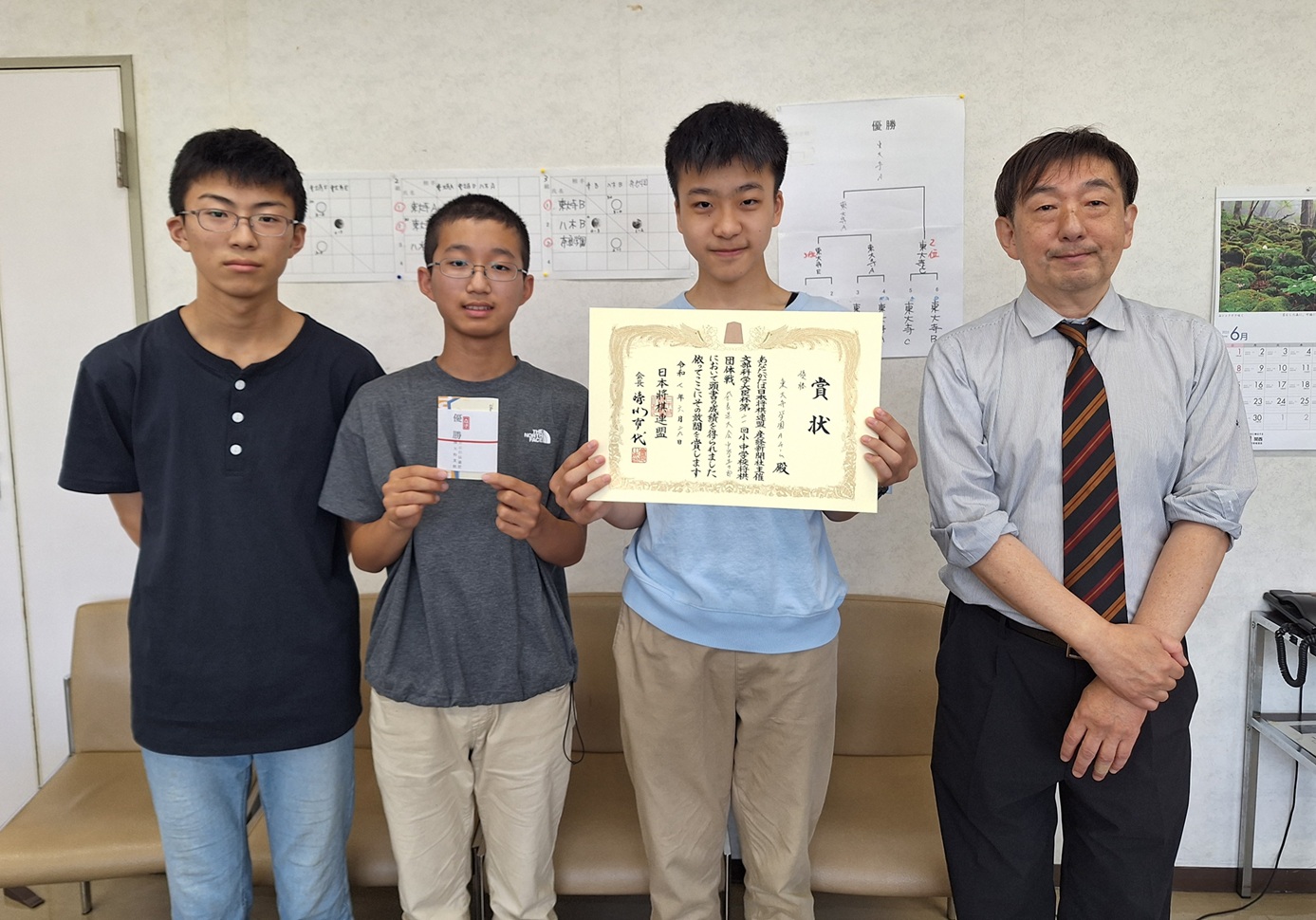 - 優勝:東大寺学園中学校Aチ-ム(田畑 優さん、末浪佑二郎さん、松岡輝真さん)、平藤眞吾七段