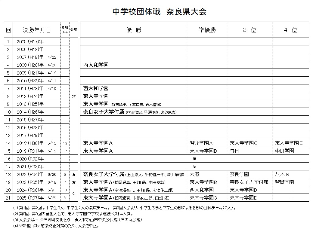 令和4年 第18回中学校団体戦 2022/6/26 大和郡山市中央公民館 参加5チ-ム・15名