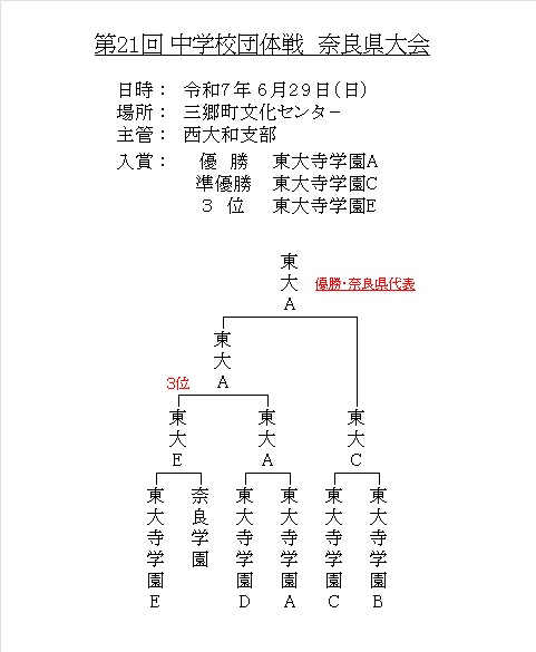 第21回中学校団体戦(奈良県大会) 2025/6/29 三郷町文化センター 参加9チ-ム・27名