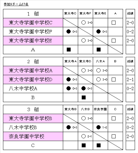 - 準優勝:西大和学園中学校チーム 3位:東大寺学園中学校Dチ-ム