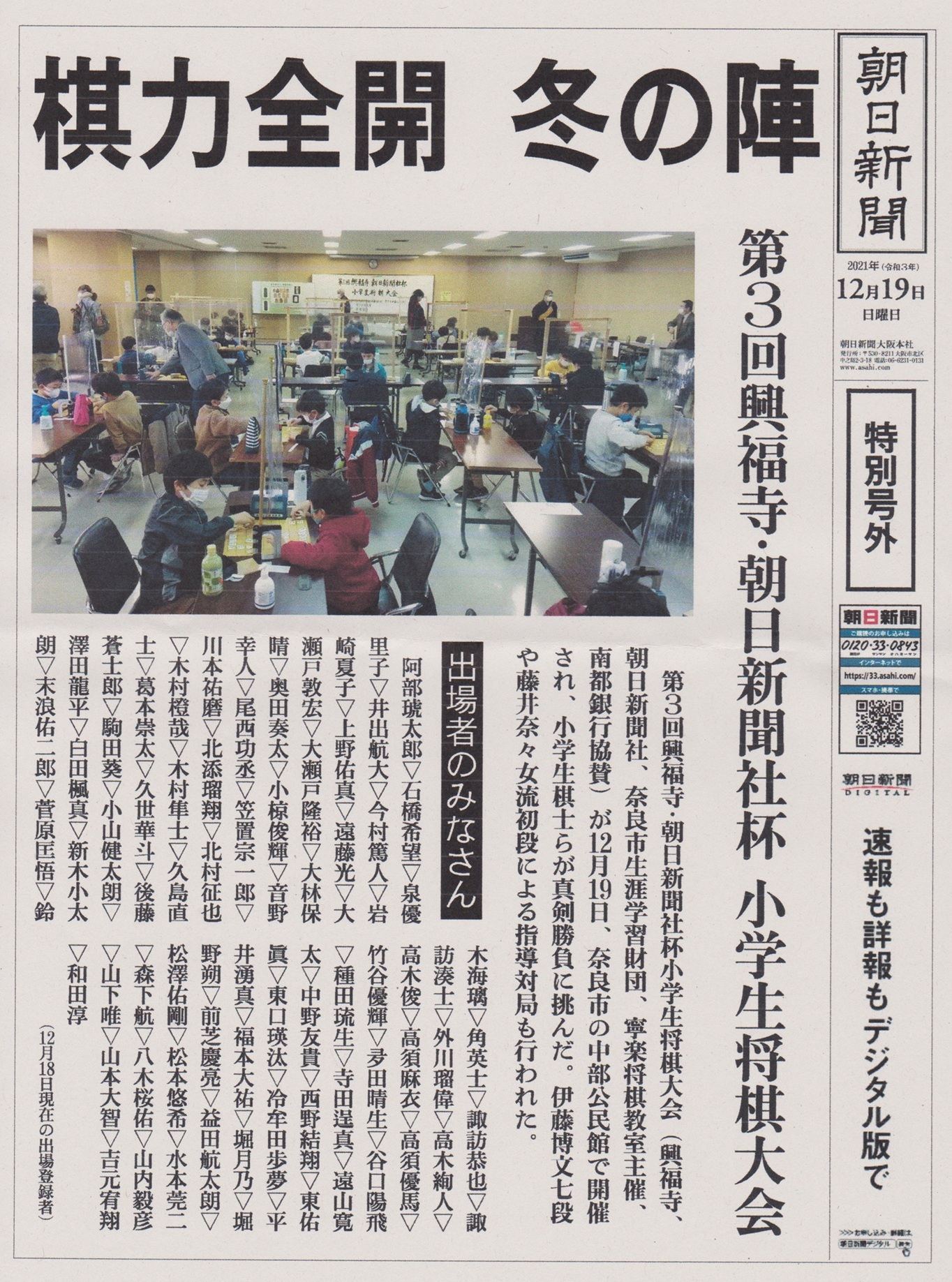 第3回 興福寺・朝日新聞社杯 2021/12/19(日) 奈良市中部公民館 参加者67名
