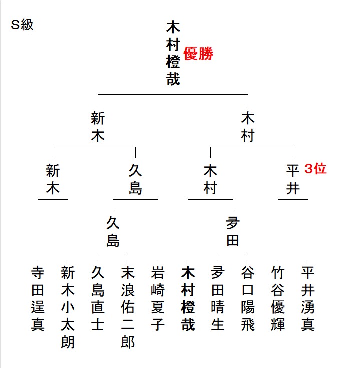 - Sクラス優勝は、木村橙哉ん・2回目の優勝です