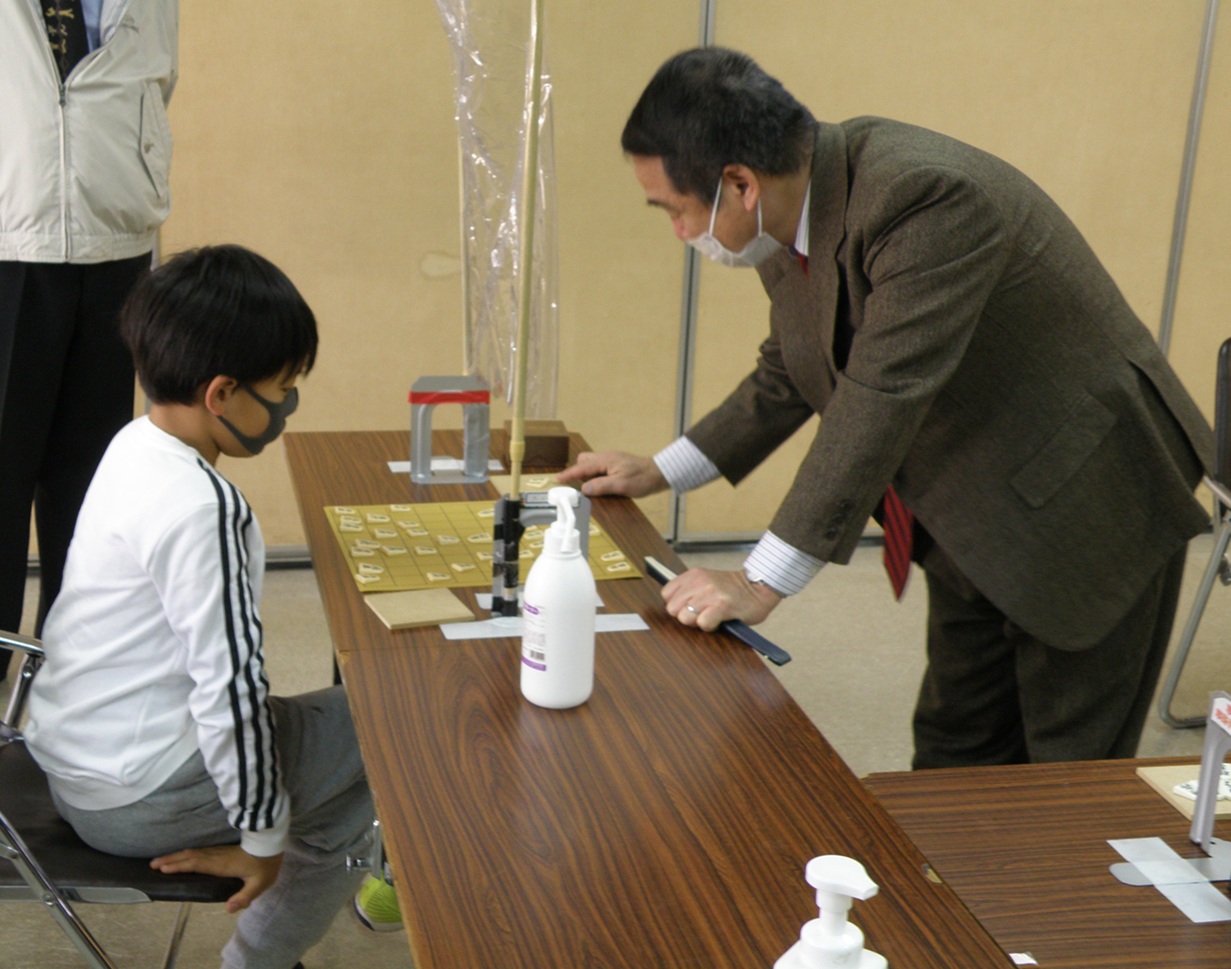 手を挙げていました、これにはびっくり。 左側に立っている子たちは、式後別会場で対局です。