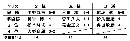 優勝:笠井 潔、準優勝:横田寿善、3位:藤井安史、4位:竹原 弘