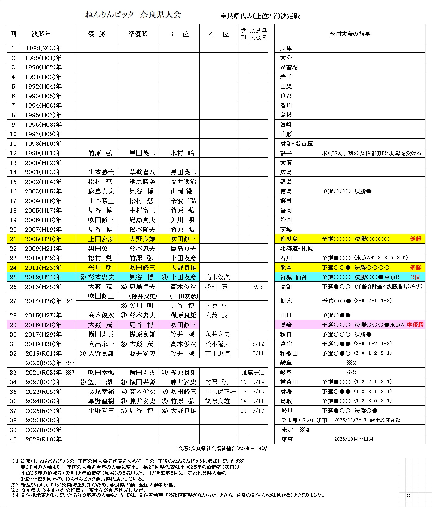 - 奈良県代表は松本隆夫さんが都合により不参加となり、替わりに大野良雄さんが出場します