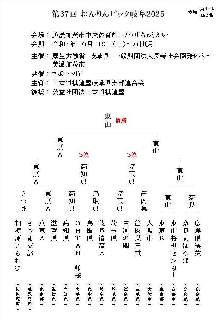 2025/10/19(日)・20(月) 美濃加茂市中央体育館 プラザちゅうたい 参加64チ-ム(192名)