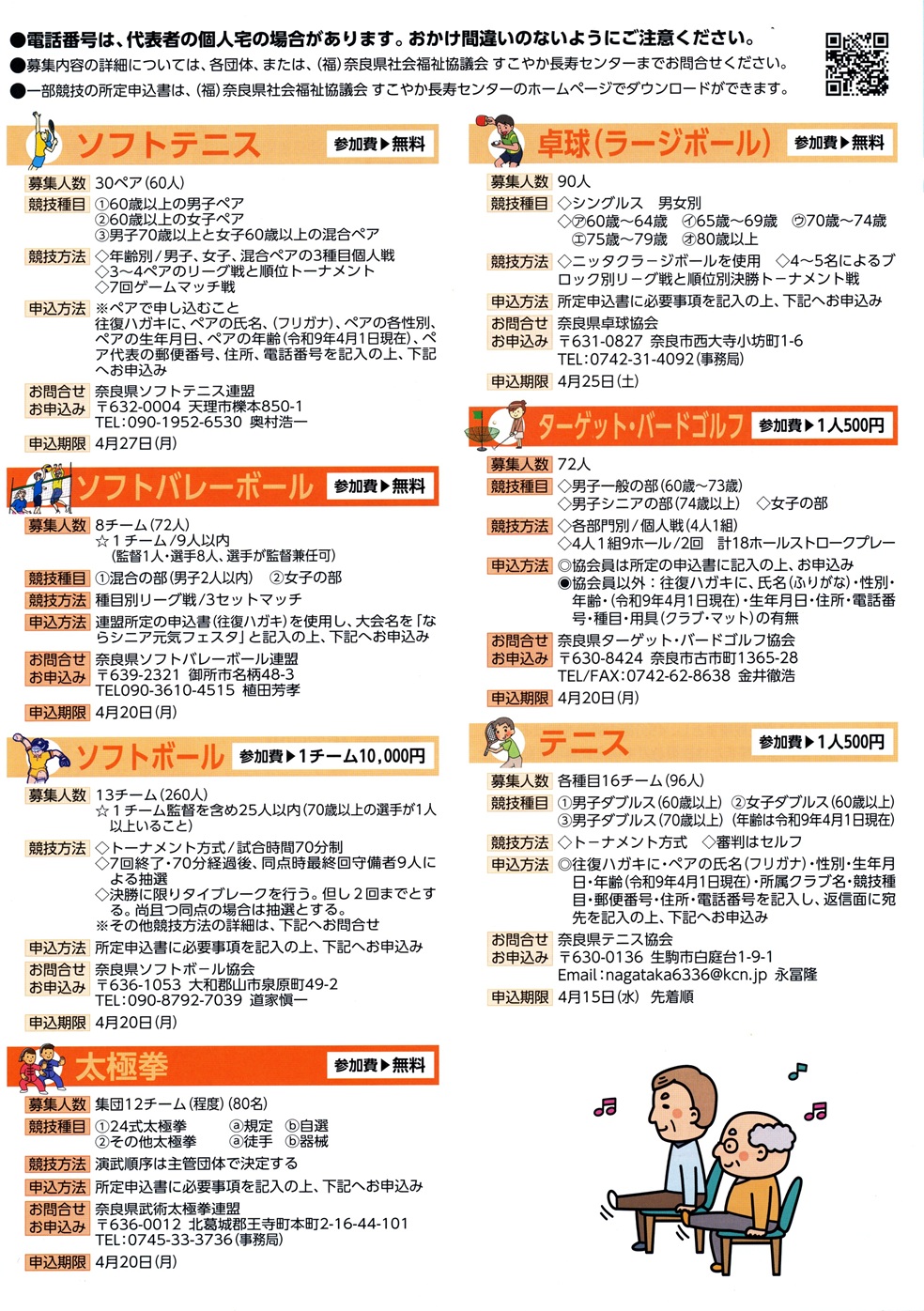- ◆第33回 ねんりんピック岐阜2021 奈良県大会 中止