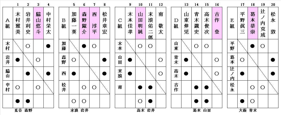 - な組決勝戦 古作 登 vs 加藤一葵 ら組決勝戦 西 淳平 vs 竹谷優輝