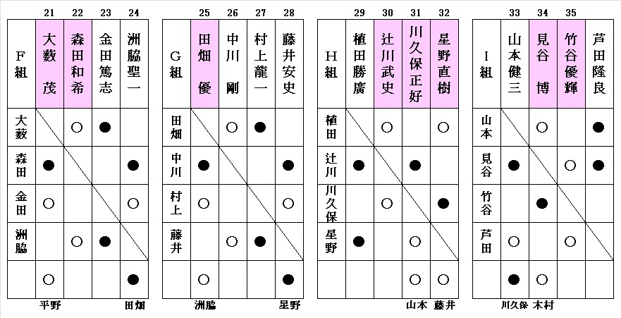 - ら組決勝戦 古作 登 vs 田畑 優 記録:加藤一葵 な組決勝戦 記録:石川高行 西 淳平 vs 中川