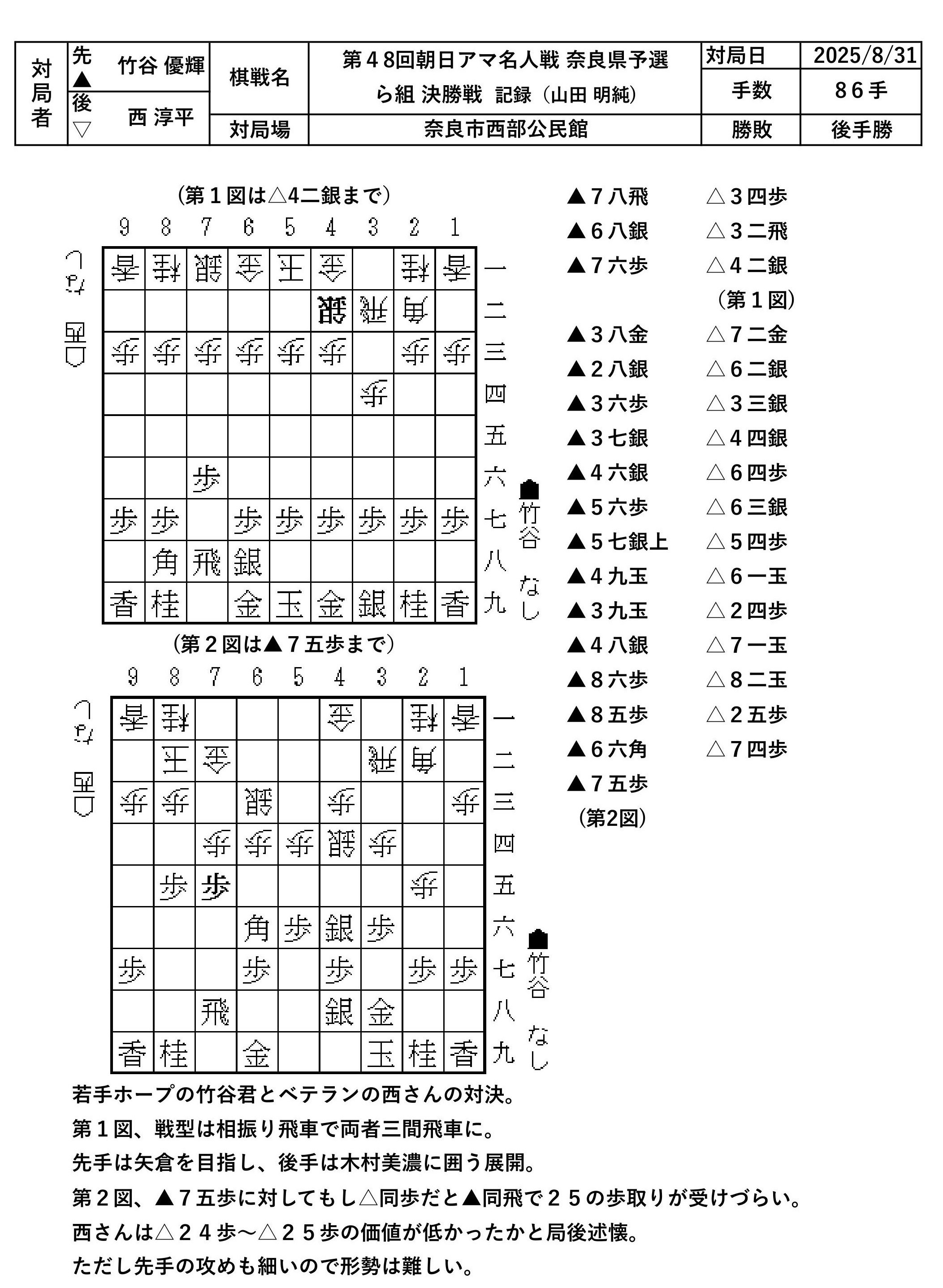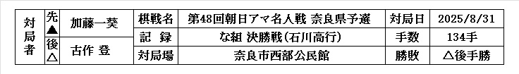 2024(令和6)年 第47回 朝日アマ名人戦 2024/8/25(日)奈良市西部公民館