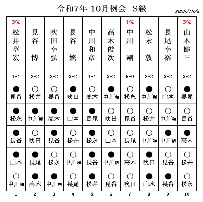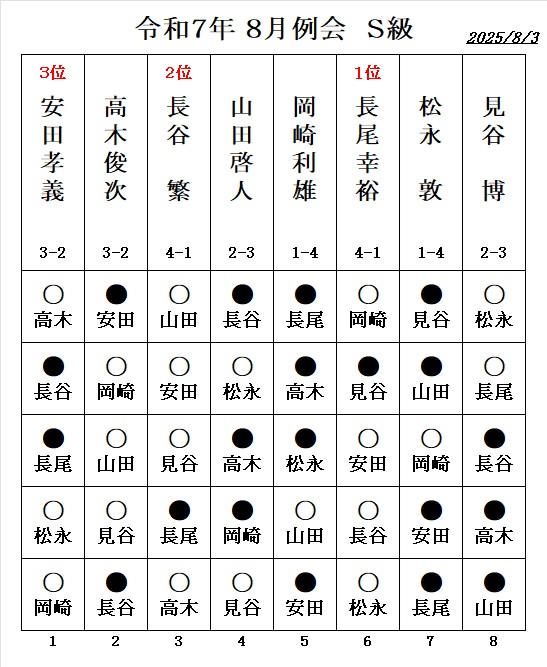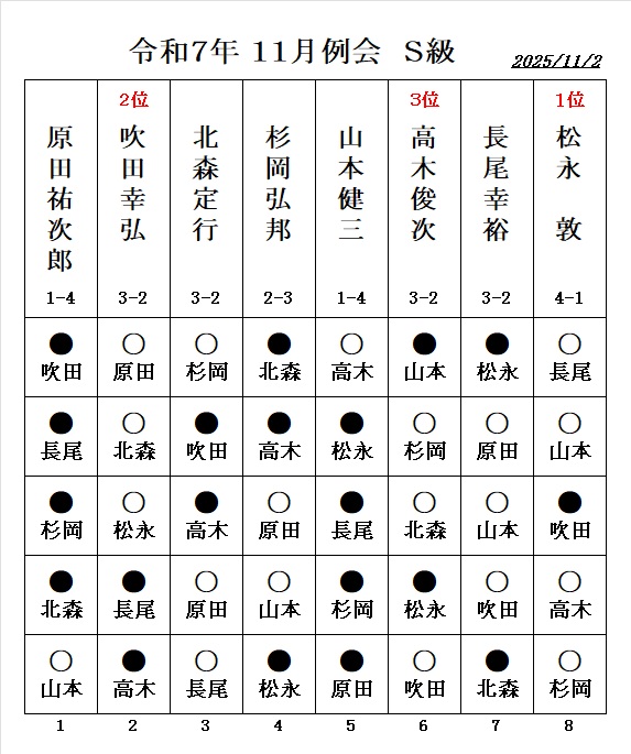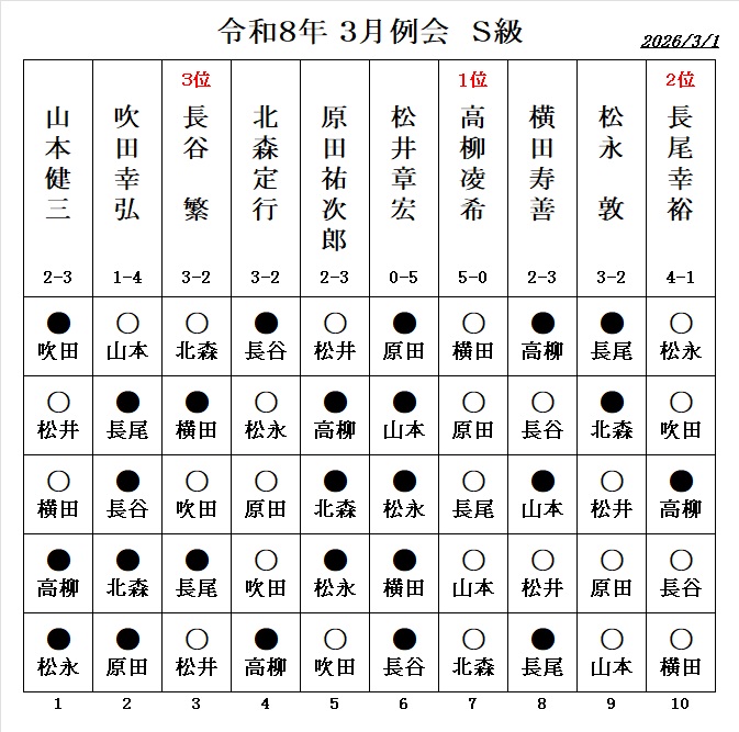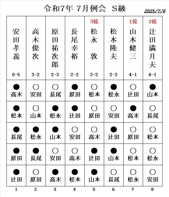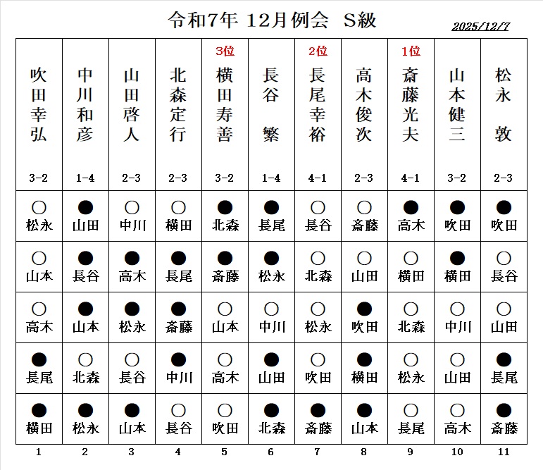 - 伊藤博文七段の指導対局、 勝者:1.5勝 敗者:0.5敗 が例会の成績に反映されます。