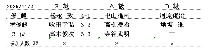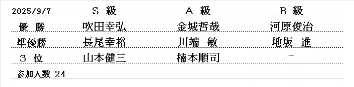 西大和支部 令和6年1月例会 (30分切負) 2024/1/7(日) 三郷町文化センタ- 参加者31名